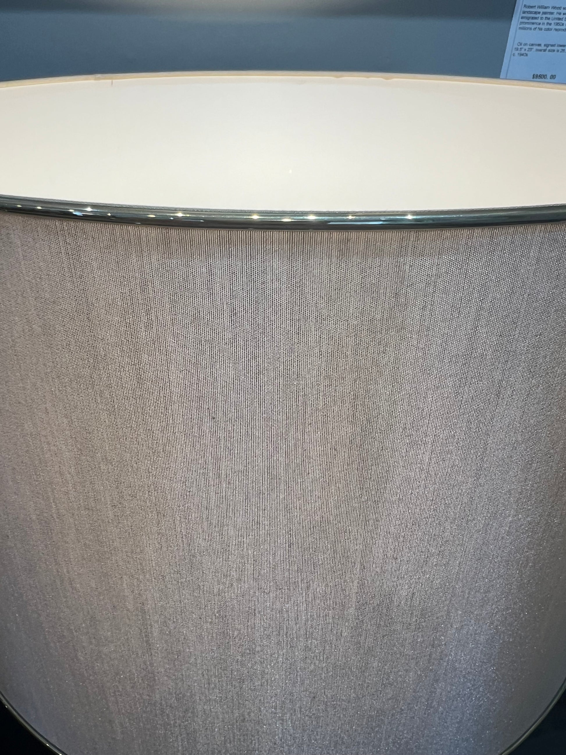 Each lamp is made out of Murano glass. The body of the lamp has a circular shape, resting on the rectangular base. Has a beautiful cylinder-shaped lamp shade.