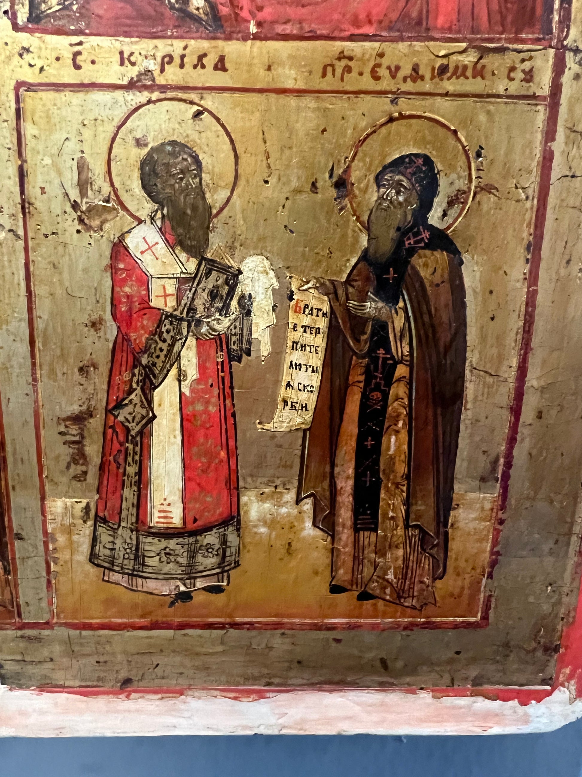 Russian Icon with Smolenskaya and Vladimirskaya Mother of God and 4 Saints